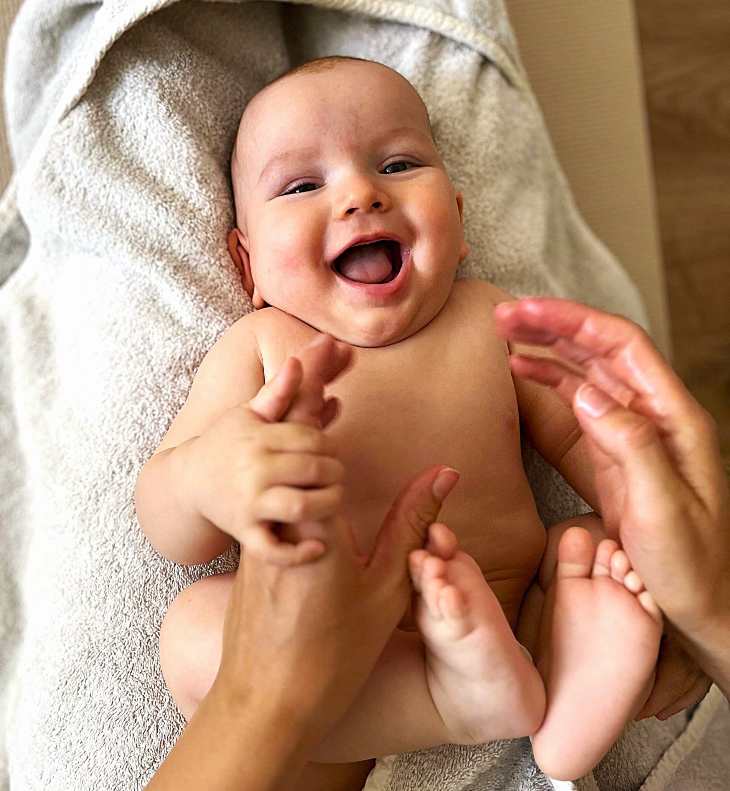 In unserem Babymassagekurs lernt ihr, euer Baby mit sanften Berührungen zu massieren und dabei seine Bedürfnisse besser wahrzunehmen. Die Massage kann die Bindung zwischen euch und eurem Kind stärken, zur Entspannung beitragen und die Entwicklung sowie die Körperwahrnehmung eures Babys unterstützen. Auch bei Bauchschmerzen oder Unruhe kann sie oft wohltuend wirken.